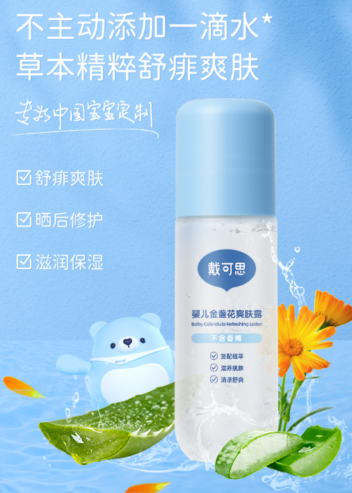 戴可思金盏花爽肤露超级适合夏天洗完澡给孩子擦身体,非常的清爽...